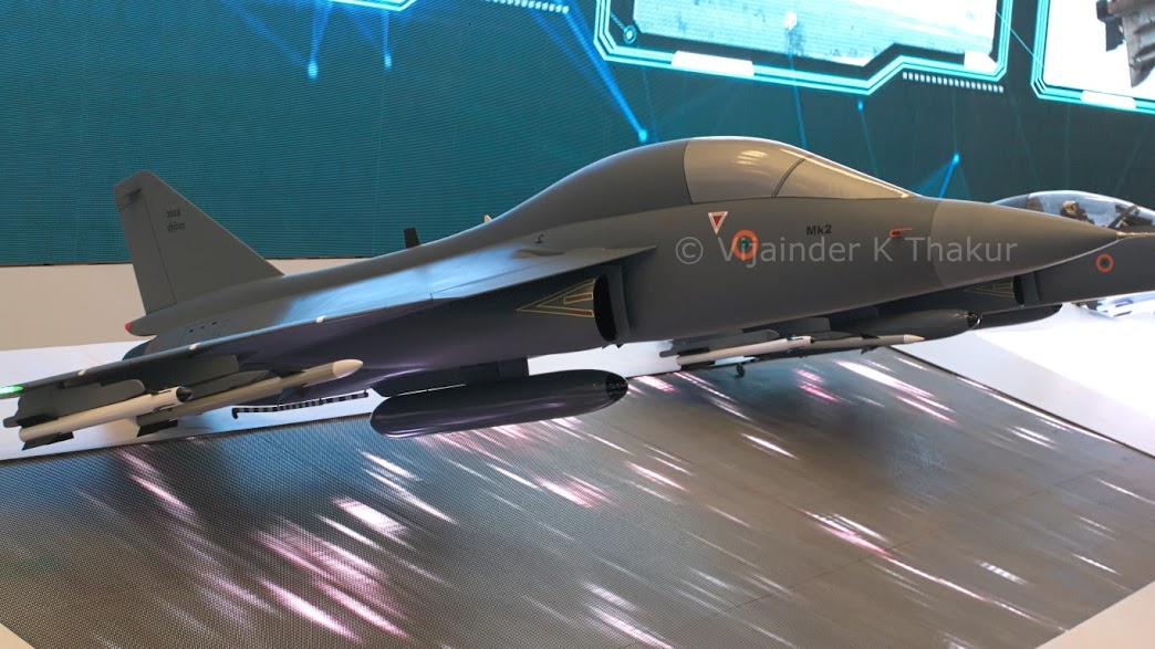 It's worth noting that the ADA itself plugs LCA Navy Mk.2 as an AD fighter that would provide cover to a carrier group against fighter and cruise missile threats, not as a strike fighter. Scale models of LCA Navy Mk.2 displayed at Aero India 2015 and Aero India 2017 were shown carrying just four air to air missiles (two on each wing) with a center-line drop tank.